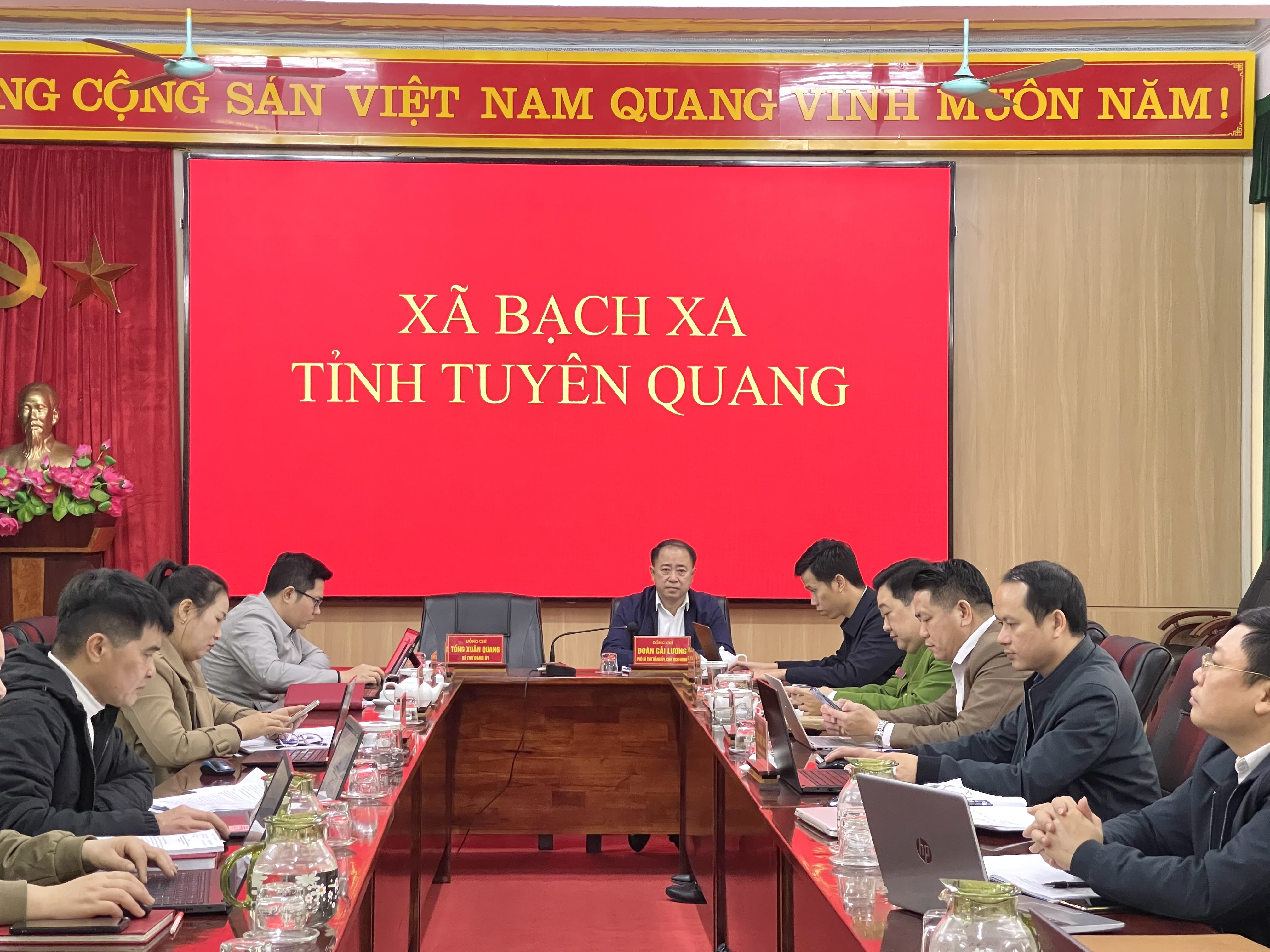 Đồng chí Trương Hải Long - Thứ trưởng Bộ Nội vụ chủ trì tại điểm cầu chính. Tại điểm cầu xã Bạch Xa có đồng chí Đỗ Ngọc Hoàn - Phó Bí thư Thường trực Đảng ủy, Chủ tịch Hội đồng Nhân dân xã; lãnh đạo Ủy ban nhân dân có đồng chí Đoàn Cải Lương Phó bí thư Đảng ủy; Uỷ ban Mặt trận Tổ quốc Việt Nam xã; các ông bà trong Ủy ban bầu cử xã và Tổ bầu cử các thôn.